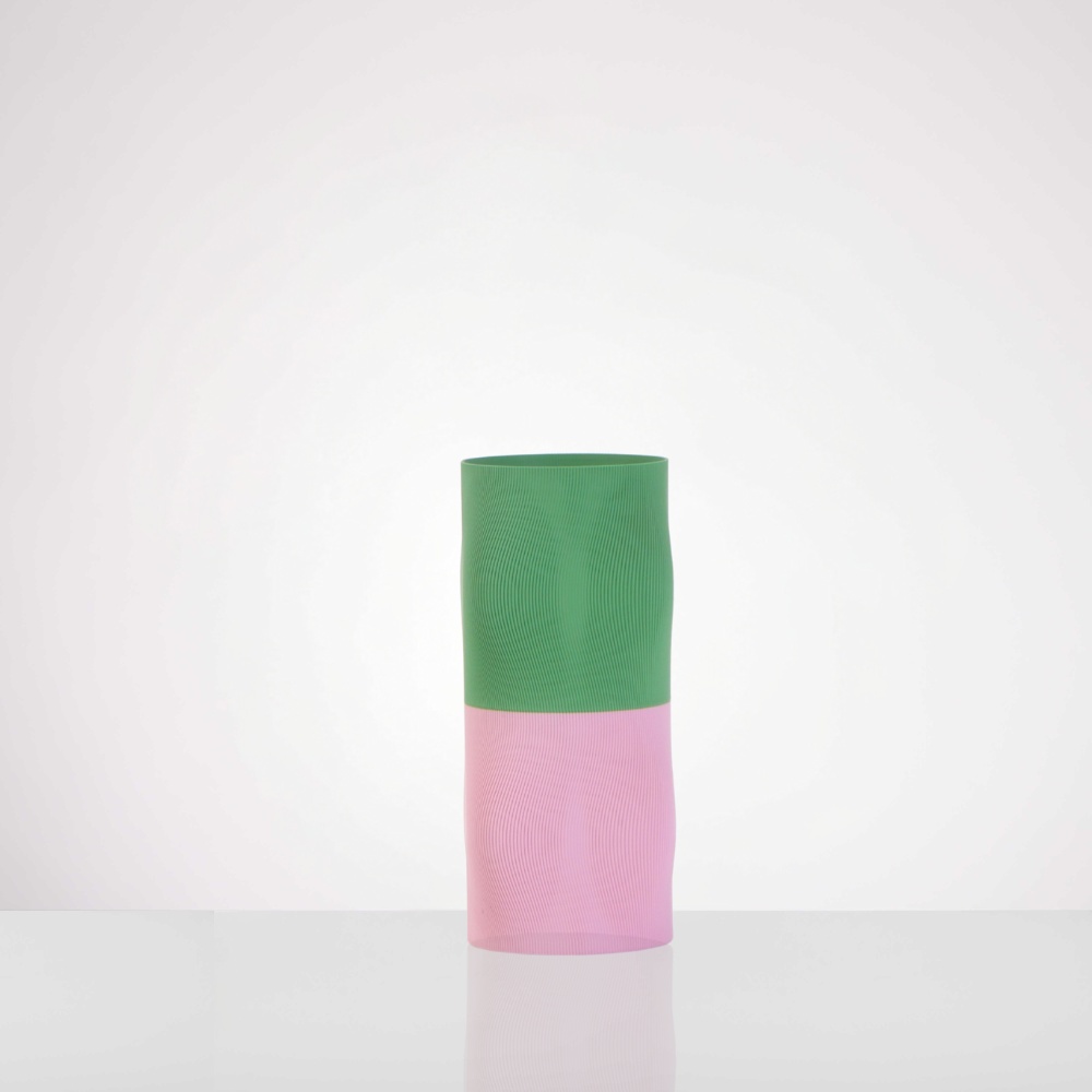 אגרטל MOON – צבע ורוד וירוק גובה 21 ס"מ קוטר 10 ס"מ מודפס במדפסת תלת מימד. עשוי 100% PLA חומר גלם המופק מעמילן תירס- חומר צמחי, מתכלה וידידותי לסביבה. מגיע עם כלי פנימי מזכוכית לאיטום למים ולניקיון ושמירה על הכלי. מתאים גם לפרחים טריים, אטום ואינו נוזל. לא מיועד לשימוש במדיח כלים, לא מותאם לשימוש חוץ.