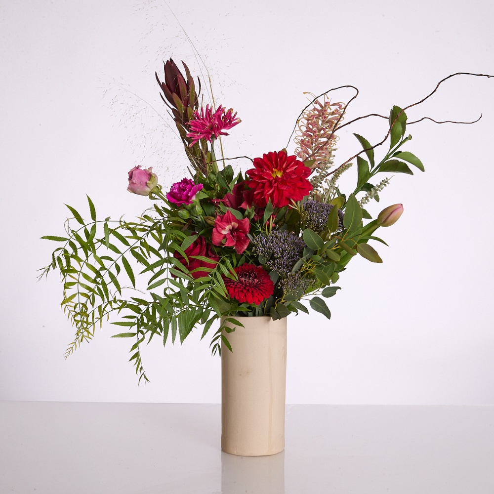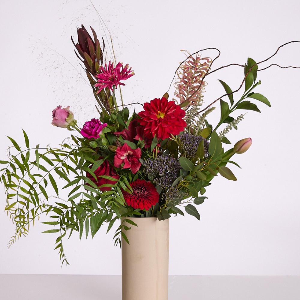 חורף באדום מביא את חמימות העונה הביתה עם גוונים עמוקים של אדום, נגיעות ורדרדות וירק טקסטורלי שמוסיף עומק. השזירה חופשית ואוורירית, קווים טבעיים ונוכחות שמרגישה חיה ונינוחה. הוא משתלב נהדר בסלון, במטבח או על קונסולה בכניסה, ונותן טאץ' חגיגי מבלי להתאמץ. מתאים כמתנה מרגשת או כפוקוס לשולחן אירוח, מרשים באור יום וגם בערב. הכי יפה בכלי בינוני עד גבוה עם מים טריים והחלפה סדירה.