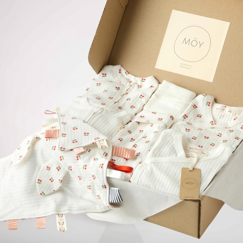 מארז לידה מפנק – 7 פריטים רכים ושימושיים מבד כותנה אורגנית 100%, בעיצובים המותאמים במיוחד לחודשי החיים הראשונים. גזרות מעטפת להלבשה בלי מעבר ראש, רוכסן אלכסוני עם שומר בד, רגליות במקום גרביים וחפתים מתקפלים להגנה עדינה מפני שריטות. כל הפריטים נעימים במיוחד ומתאימים לכביסה במכונה, והמארז מגיע באריזת מתנה מהודרת.