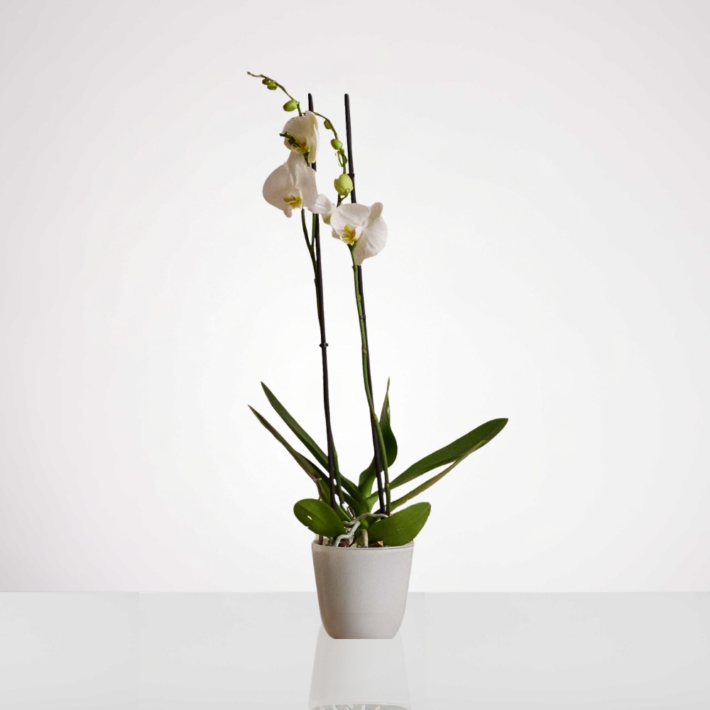 העציץ המושלם לאווירה רכה ואלגנטית. סחלב פלנופסיס לבן בשני ענפים, קל לטיפול ועמיד לאורך זמן. מתאים להאיר כל חלל בבית או במשרד, ואידיאלי כמתנה מרגשת סחלב פלנופסיס (Phalaenopsis) לבן – מזן נוח וקל לגידול, מגיע בכלי בצבע פודרה עדין. דורש השקיה אחת לשבועיים, אוהב תאורה בינונית עד גבוהה, ומתאים לטמפרטורות של 18–24°C. יתרונות: פריחה מרשימה בצבע ורוד עז, קל לתחזוקה ומתאים גם למגדלים מתחילים