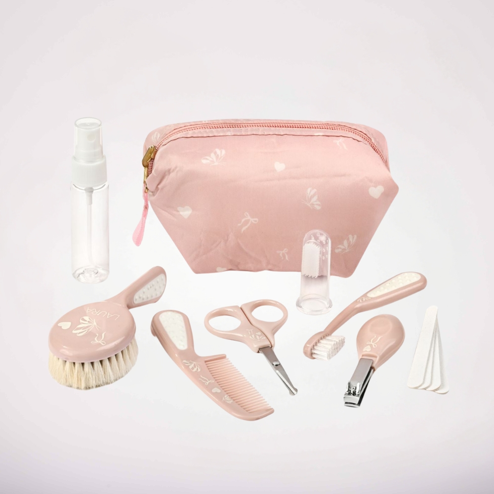 בתוך הערכה תמצאו מברשת רכה, מסרק, מספריים, קוצץ ציפורניים, פצירה, מברשת שיניים, בקבוק ספריי, קופסאות אחסון ואביזרים משלימים, כולם מאורגנים בתיק קומפקטי ונוח לנשיאה. כל פריט מותאם לשימוש יומיומי ומאפשר טיפול מסודר, נגיש וקל.