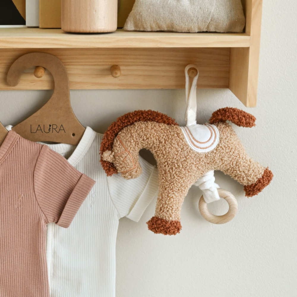 רעשן Rocking Horse הוא רעשן תלייה רך ועדין בעיצוב סוס נדנדה קלאסי, בגוונים טבעיים וחמים המשתלבים בקלות בכל סביבת תינוק. הטקסטורה הרכה והעיצוב המעוגל יוצרים מראה רגוע ונעים, עם קריצה לעולם צעצועי הילדות המסורתיים. הרעשן מתאים לתלייה על עגלה, סל קל או פינת משחק, ומוסיף עניין עדין באמצעות תנועה קלה וצליל רך. טבעת העץ התחתונה מאפשרת אחיזה נוחה ומגע מגוון, כחלק מחוויית משחק שקטה ומאוזנת. פריט שמחבר בין אסתטיקה על-זמנית לפונקציונליות פשוטה, ומתאים כמתנה אלגנטית או כתוספת מעוצבת ורכה לשגרת היום של התינוק.