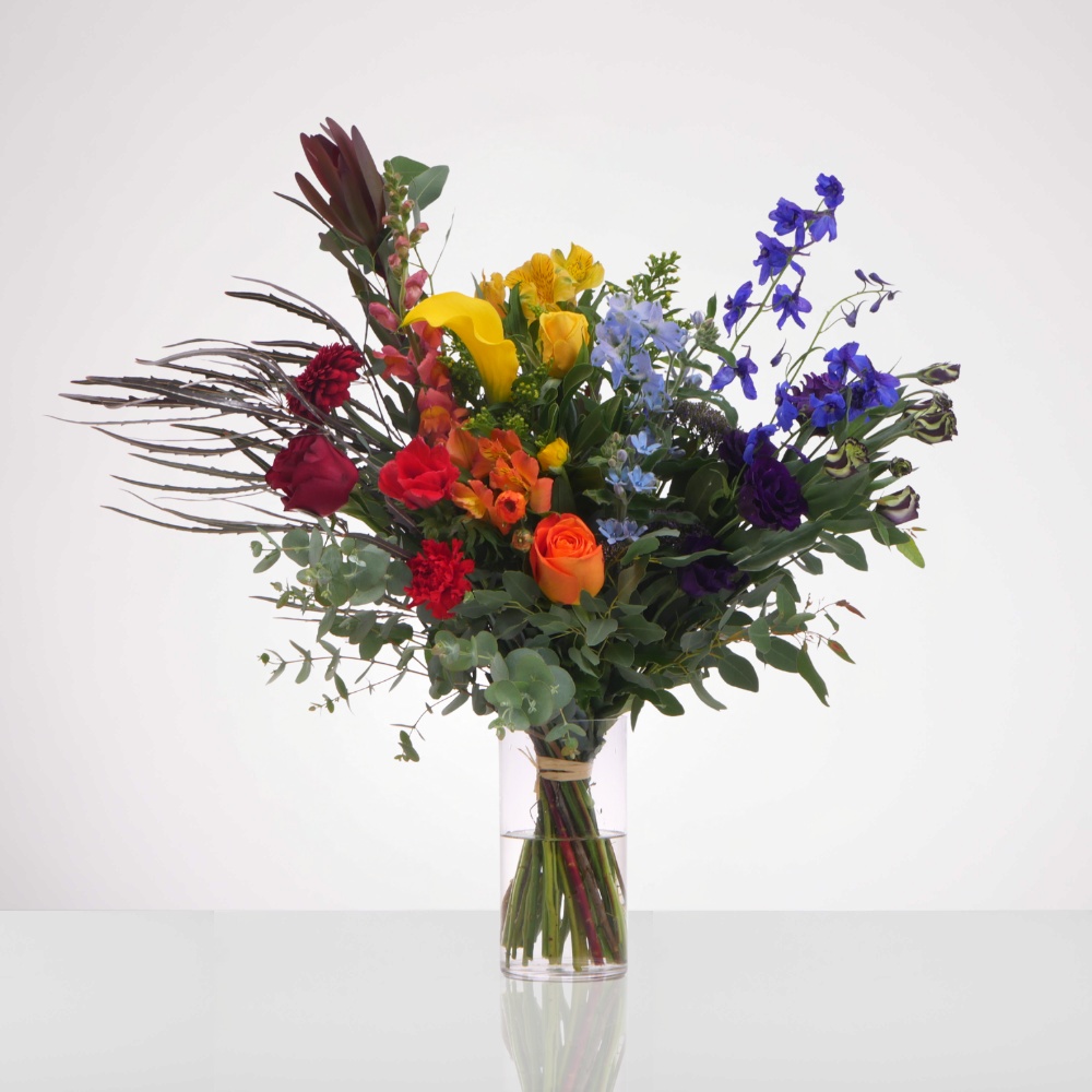 זר צבעוני ודרמטי בהשראת עולמו הפופי של האמן ג׳ף קונס – שילוב נועז של צבעים חיים, טקסטורות מפתיעות ופריחה לא שגרתית. עיצוב שמושך את העין ומרגיש כמו יצירת אמנות אחת גדולה. מושלם למי שאוהב צבע, אמירה ונוכחות שממלאת את החלל באנרגיה שמחה.